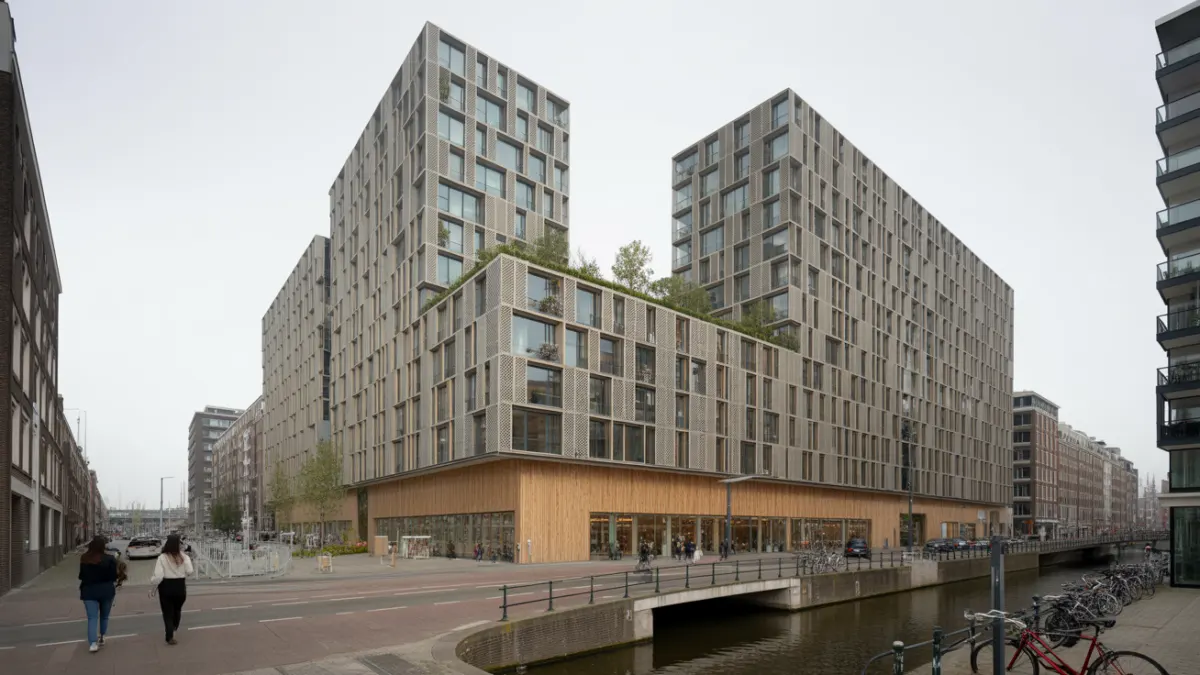 Амстердам давно перестал быть городом, где жилые кварталы существуют отдельно от деловых районов. Городская политика последних полутора десятилетий последовательно продвигает идею смешанной застройки — и на то есть серьёзные причины. Дефицит территории, рост населения и стремление к сокращению транспортных потоков сделали многофункциональные комплексы не архитектурной модой, а градостроительной необходимостью.
